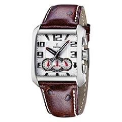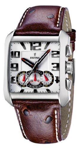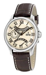 When I received this watch (Festina 160793), I immediately noticed that it had a few very small (but noticeable) scratches on the crystal and silver rim. At first, I thought is was a second that was sent to me by mistake. Also, the dual time dial was not working. The customer service agent explained that the dual time dial battery was out of power. He advised me to take the watch to any watch repair store to replace the battery! For a brand new, never been used, expensive watch!! Also, it took me a bit of time to set the flip-over metal clasp mechanism on the leather band. In addition, due to the heavy weight of this watch, the turning knob was very uncomfortable against the top of my wrist. Finally, the watch comes with no booklet to explain how to set the time, set the dual time dial, and use the clasp mechanism. The design, packaging, and quality control of this watch needs work!!