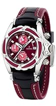 Red dial; bezel; and strap Chronograph Date display Multi-tier dial Luminious hands and markers Poly-carbon case insets Ruber strap with fabric accent Water resistant 100M/330 feet Spoke design caseback Ceramic accented bezel Unique gear protector on crown 36mm case width One year warranty