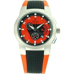 Brushed Stainless Steel Case Luminous Hands and Hour Markers Domed Crystal Date Window between the 4 & 5 o'clock position Chronograph: Measurement display up to 59 Minutes; 59 Seconds in 1 Second Increments Time: Hours; Minutes; and Seconds Calendar: Day & Date Accuracy: -/+20 Seconds per Month on average when worn at normal temperatures Crystal Oscillator: 32;678 Hz Water Resistant to 100 Meters (330 Feet) Rubber Strap with Buckle Clasp Battery Type: SR626SW 41mm Case Width not including crown (Approximately 1 3/4")